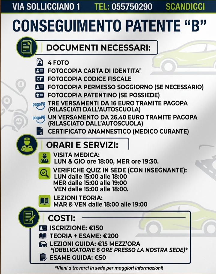 Vieni a trovarci in sede con i tuoi documenti. In meno di 10 minuti la tua pratica è aperta e sei pronto per iniziare. Zero burocrazia, pensiamo a tutto noi.📱 Teoria Smart & App
