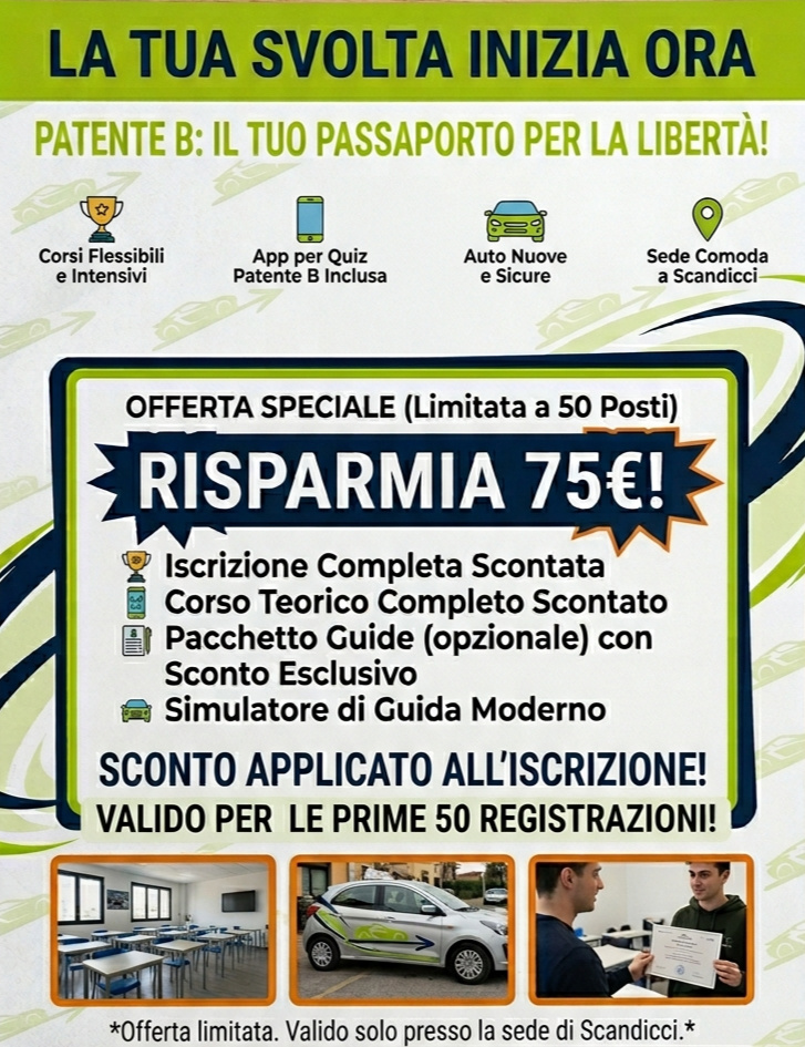 Da anni siamo il punto di riferimento per i guidatori di Scandicci. Oggi, con 'La Svolta', uniamo la nostra storica esperienza a un approccio dinamico e giovanile. Che tu stia cercando la tua prima patente B o un corso specialistico, troverai un ambiente accogliente e soluzioni su misura per i tuoi orari.